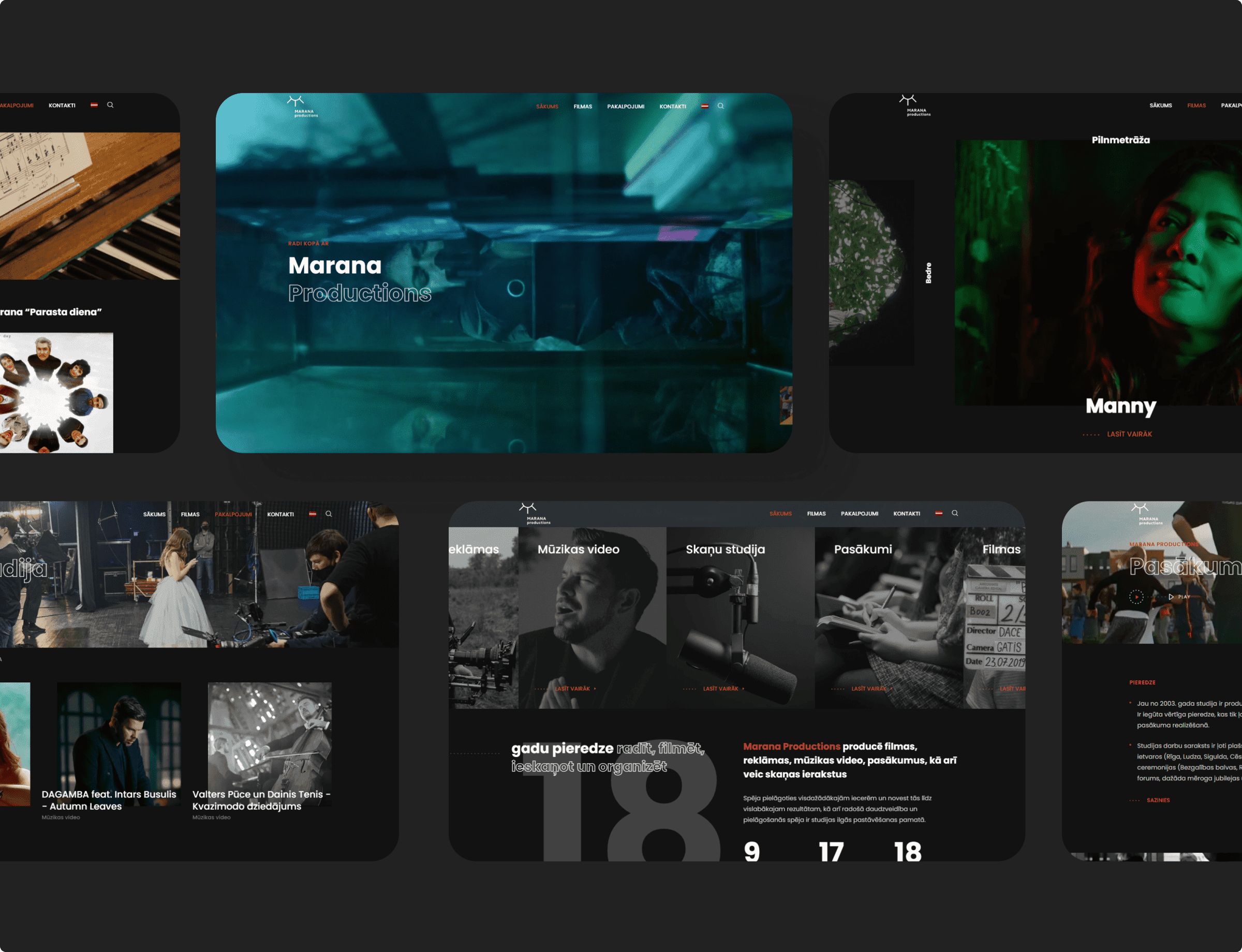 Marana Productions produces films, commercials, music videos and events, as well as sound recordings. Already 18 years experience in commercial production, 17 years experience in event production and 9 years Marana Productions also produces films. Marana Productions has produced videos for such artists as Intars Busulis, Mesa, Darta Stepanova and others.